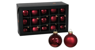 w/b. 30 glassballs/cap dark red combi 57 mm