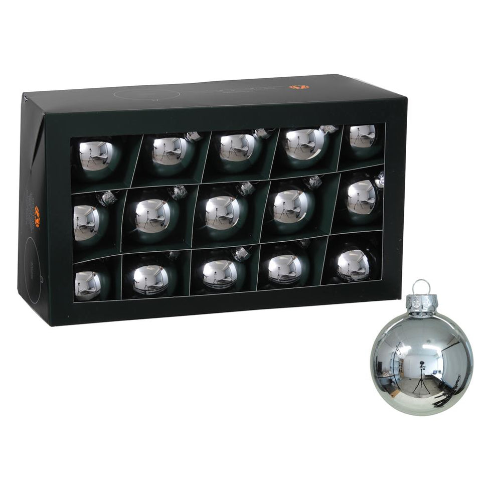 w/b. 30 glassballs/cap silver shiny 57 mm