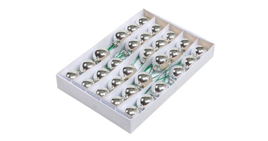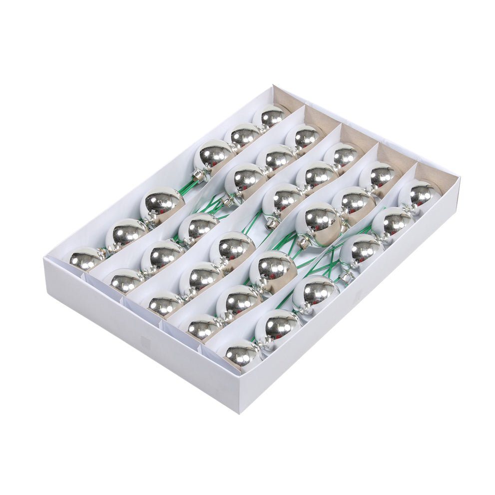 w/b. 30 glassballs/long wire silver shiny 50 mm