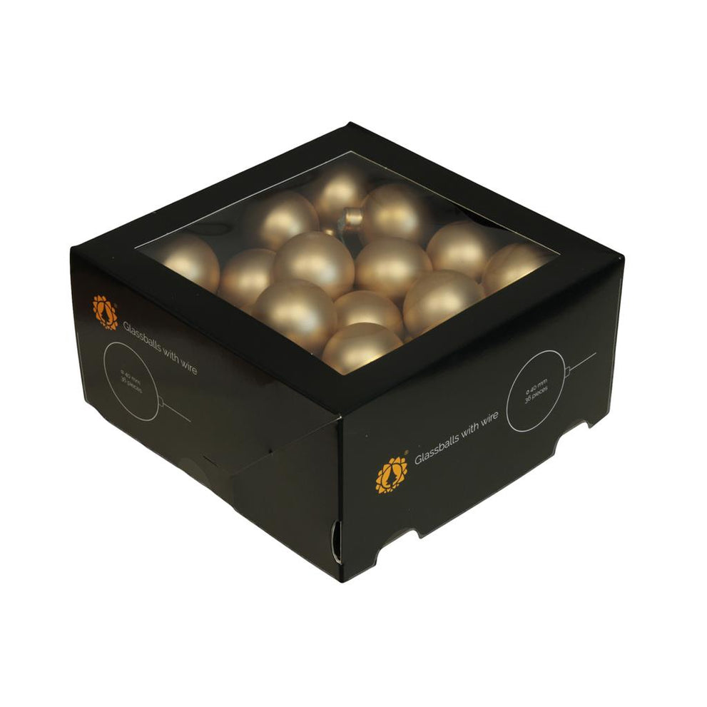 w/b. 36 glassballs/wire bright gold mat 40 mm