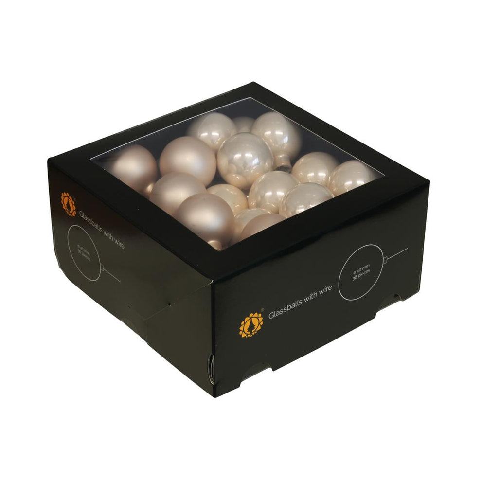 w/b. 36 glassballs/wire champagne combi 40 mm