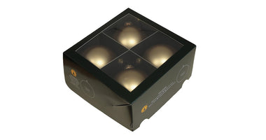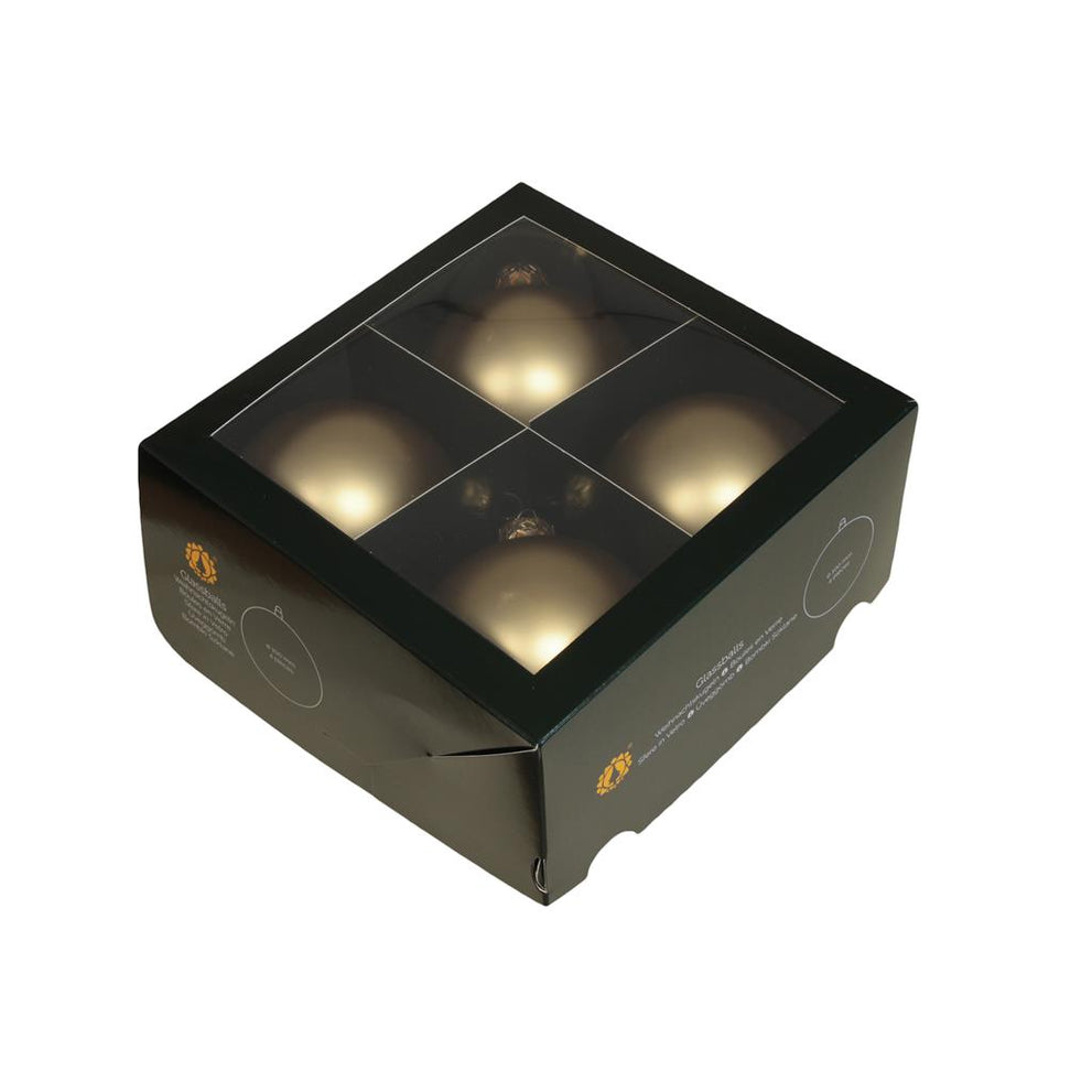 w/b. 4 glassballs/cap bright gold mat 100 mm