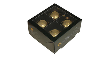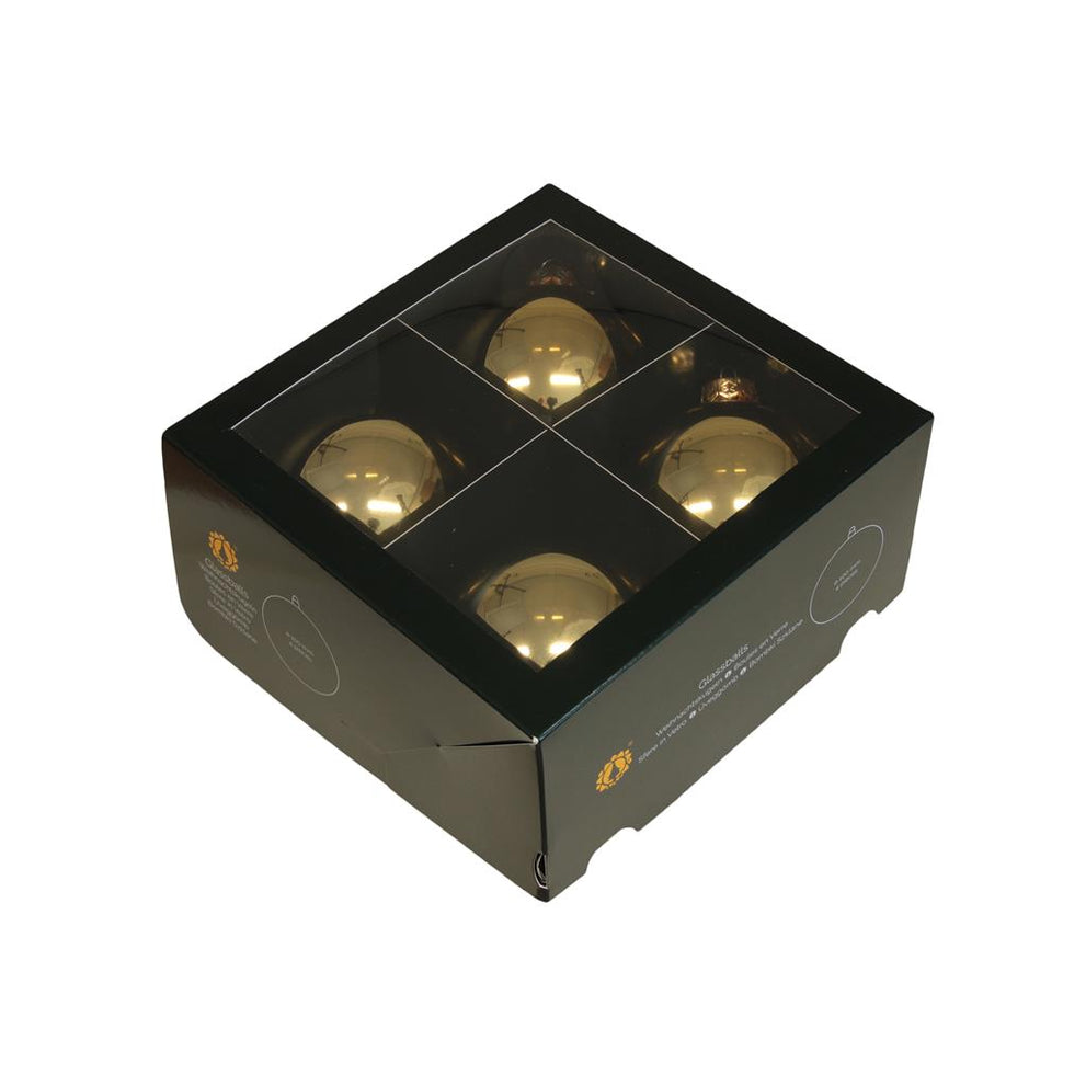 w/b. 4 glassballs/cap bright gold shiny 100 mm