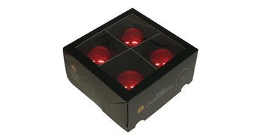 w/b. 4 glassballs/cap red shiny 100 mm
