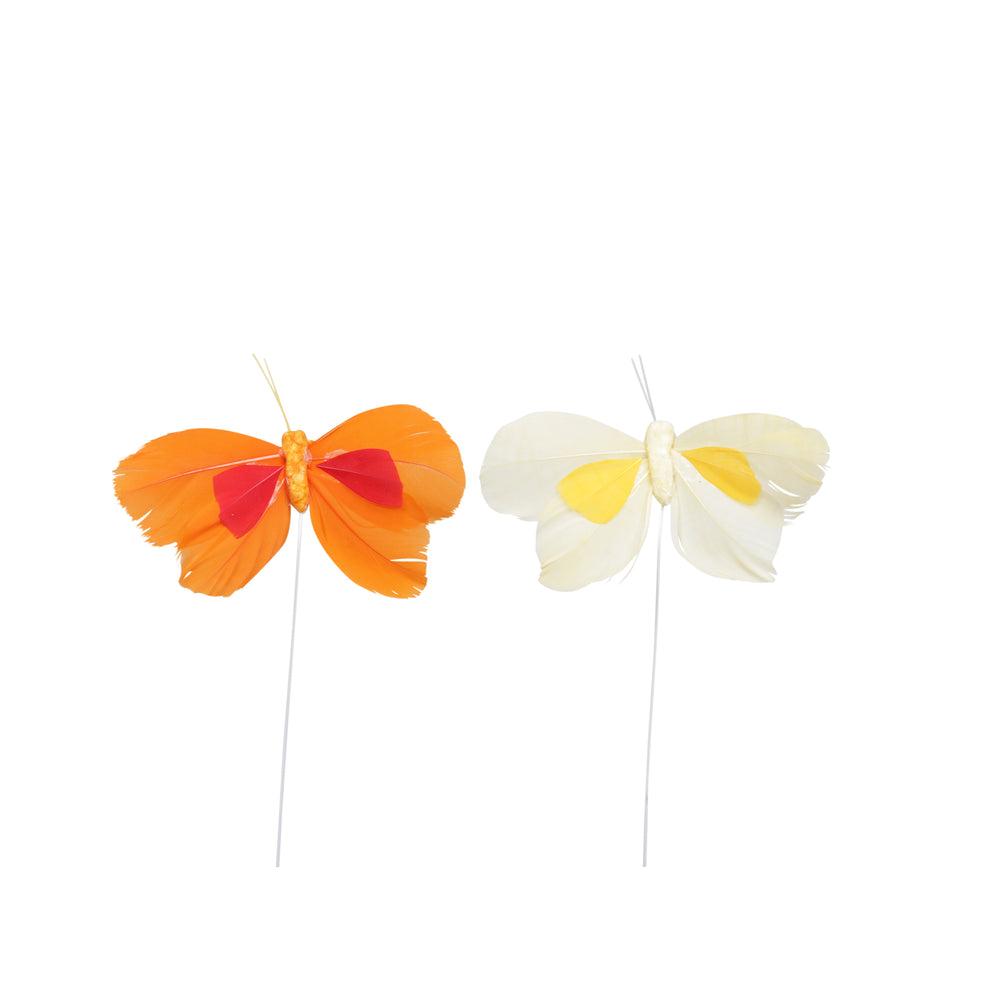 w/b. 48 butterflies/pick yellow/orange 8 cm