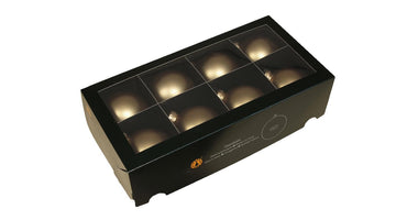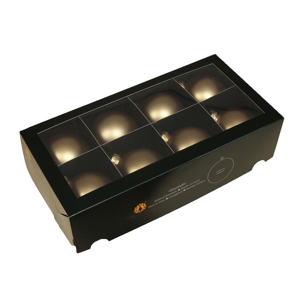 w/b. 8 glassballs/cap bright gold mat 80 mm