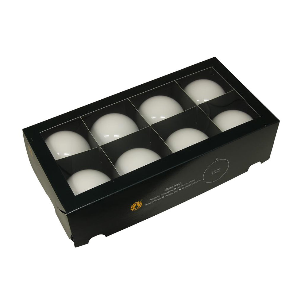 w/b. 8 glassballs/cap white opal 80 mm