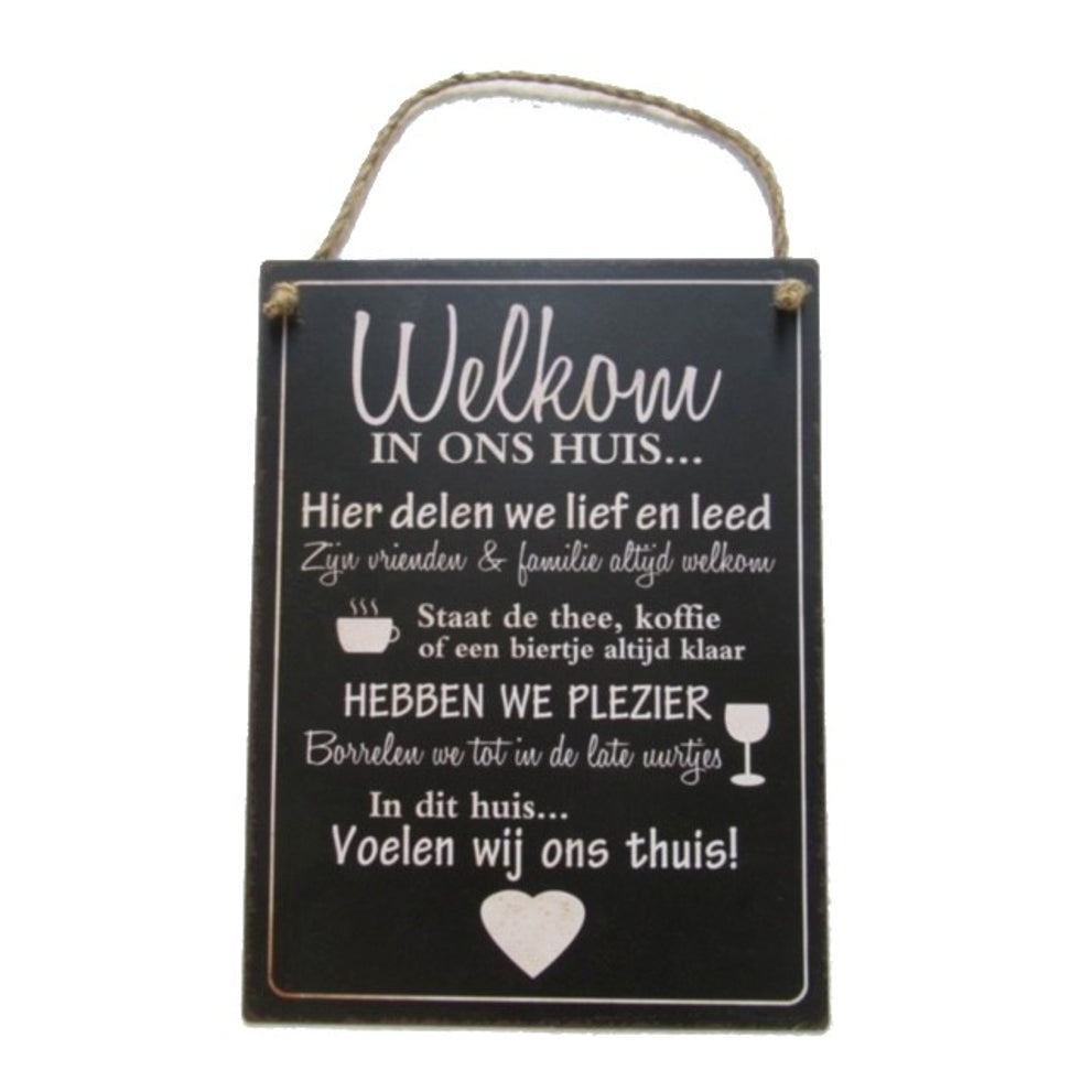 Wall Hanger Metal "Welkom Huis" 30x40cm Black