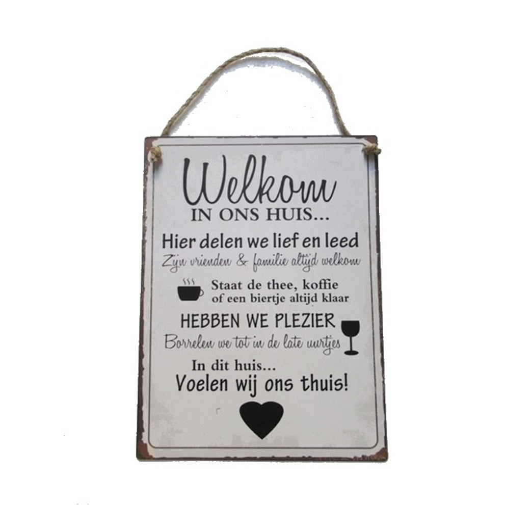 Wall Hanger Metal "Welkom Huis" 30x40cm WHITE