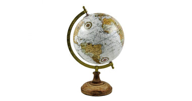 WERELDBOL OP VOET 20CM WIT