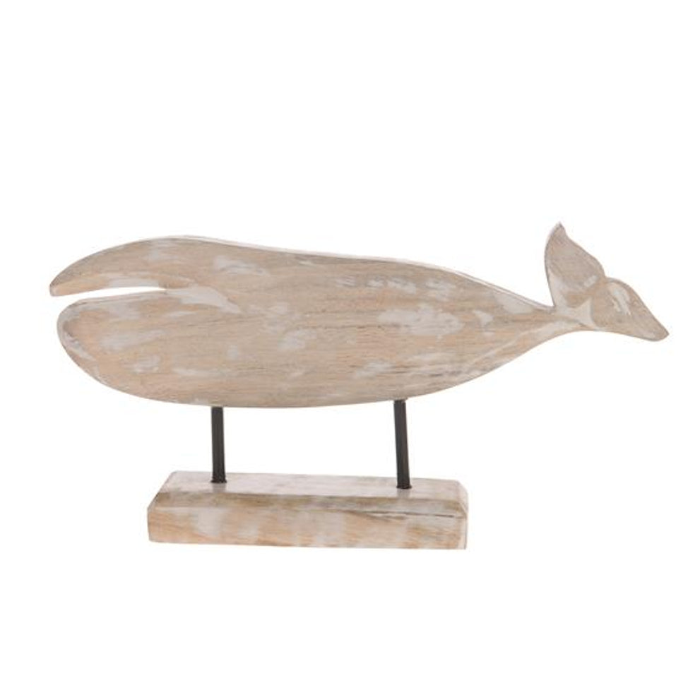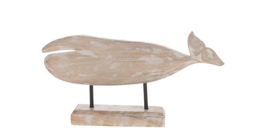 Whale on stand mango wood 15x30x5cm White-wash