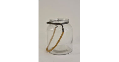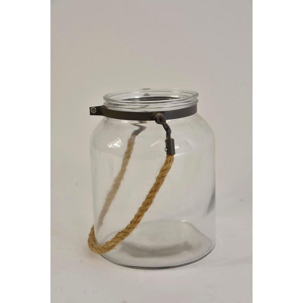 Windlicht glas helder met jute hengsel D16 H20/45cm