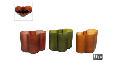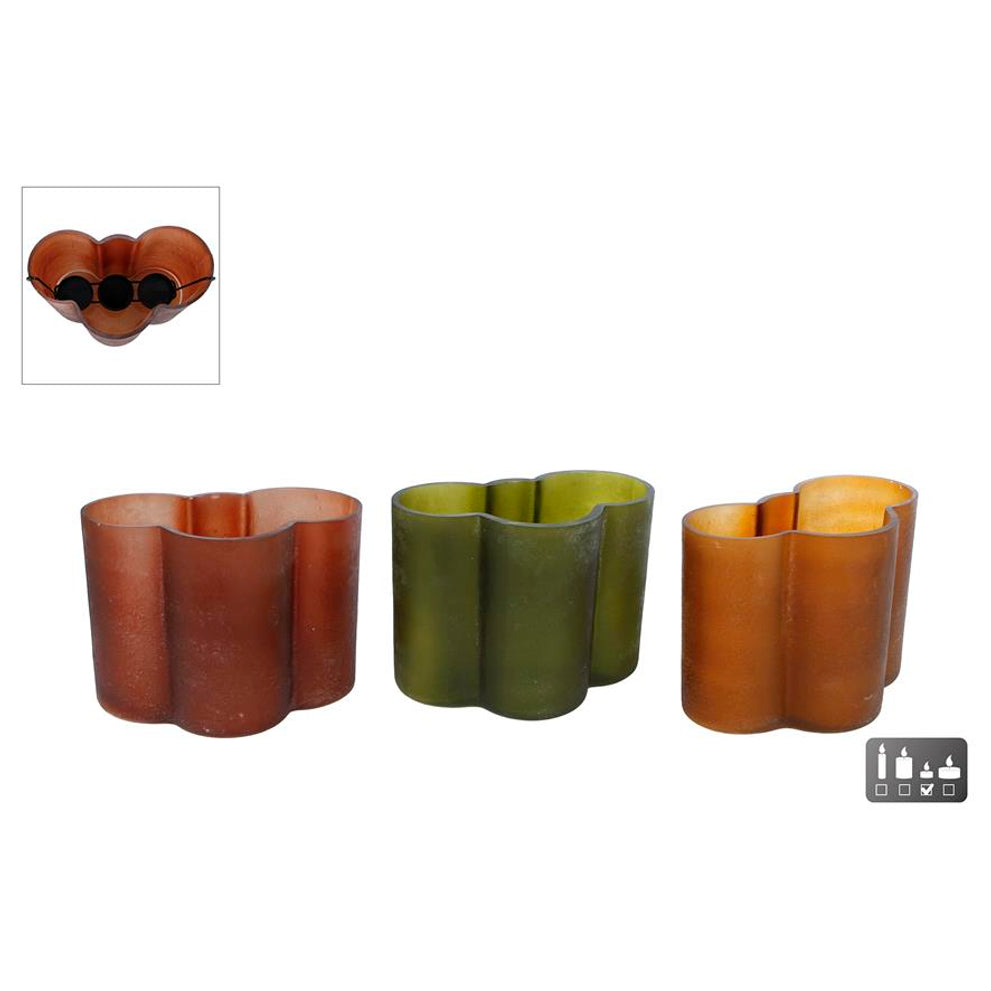 Windlicht "Jos" XL d.groen/bruin 3 assortie glas 16,5x9x12,5cm