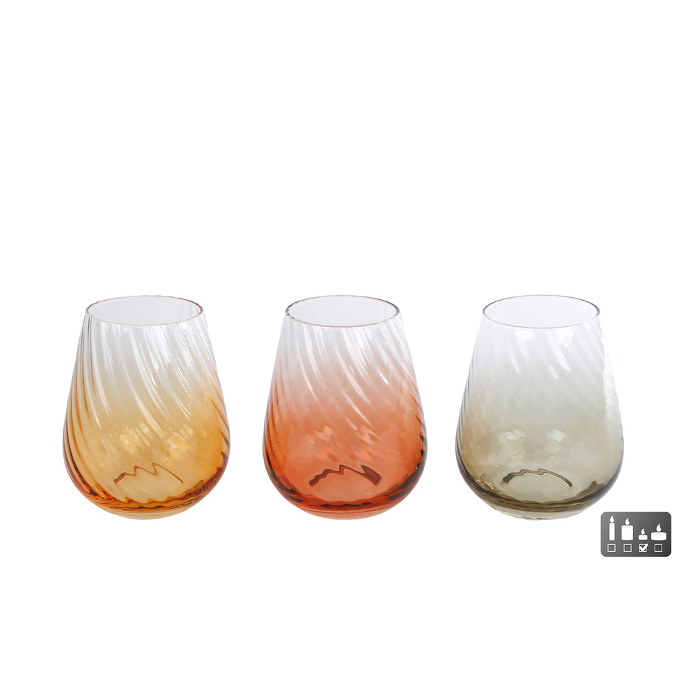 Windlicht "Martien" ribbel helder 3 assortie glas 7,2x5x12cm