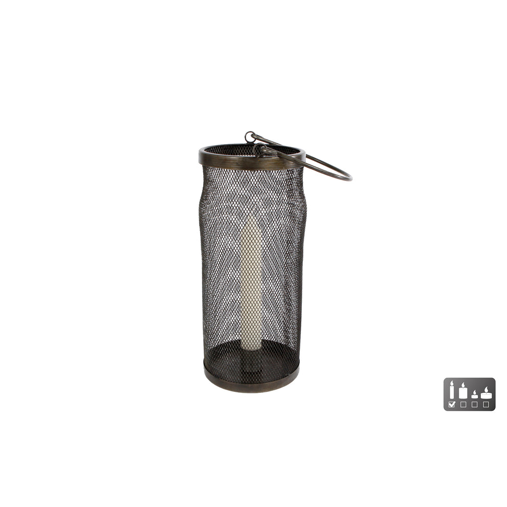 Windlicht met kaarsenhouder L zwart metaal 10x10x23 cm