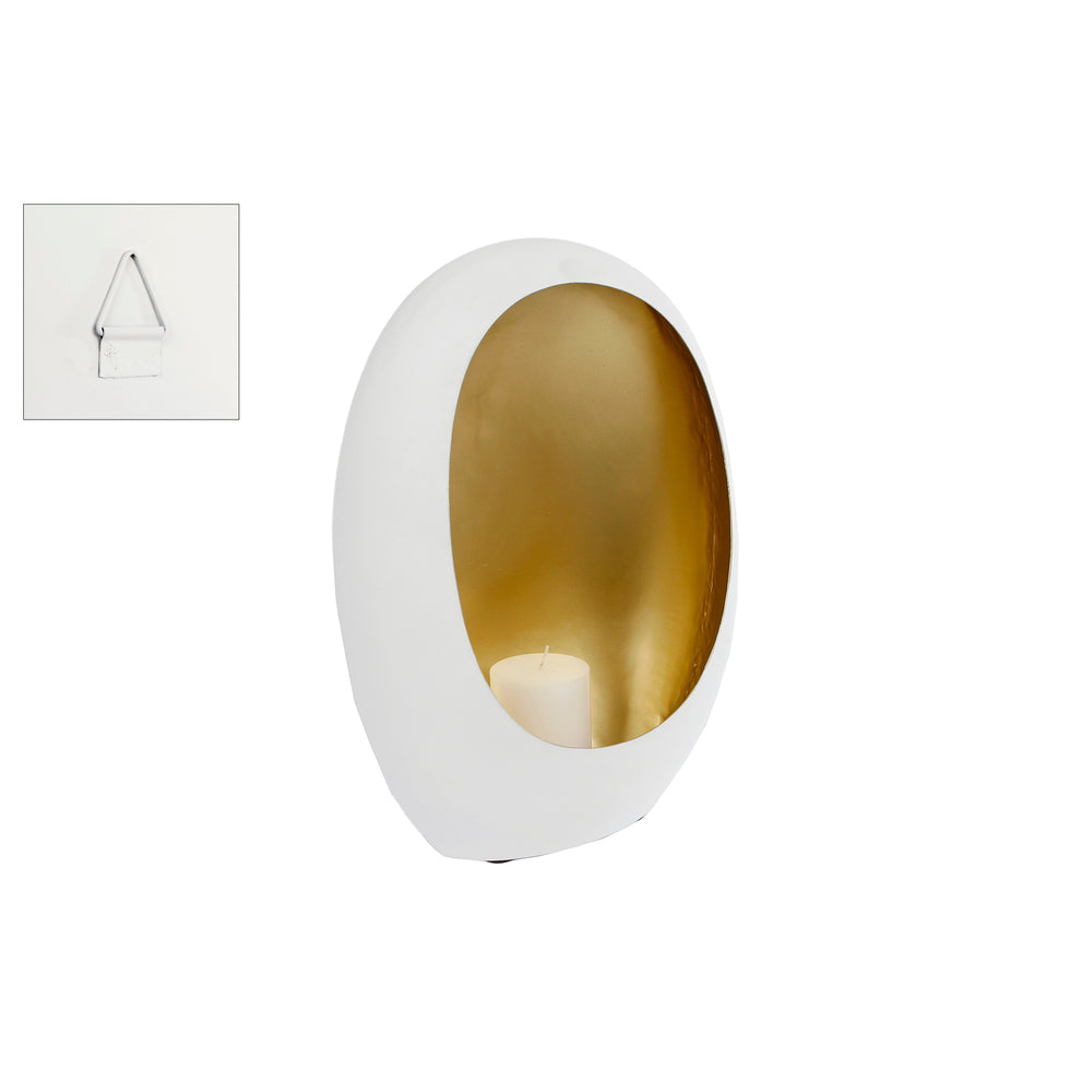 Windlicht "Pim" XL wit/goud metaal 27x16x38cm
