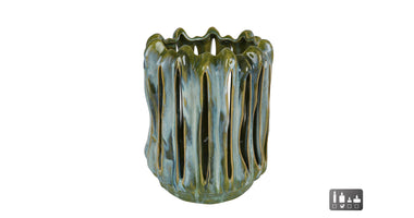 Windlicht "Richard" L groen/wit aardewerk 20x19,5x23cm