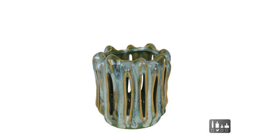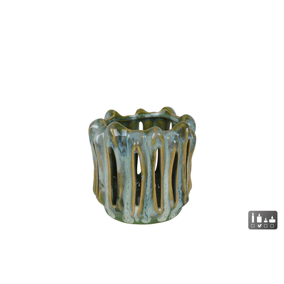 Windlicht "Richard" S groen/wit aardewerk 10x10x10cm