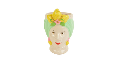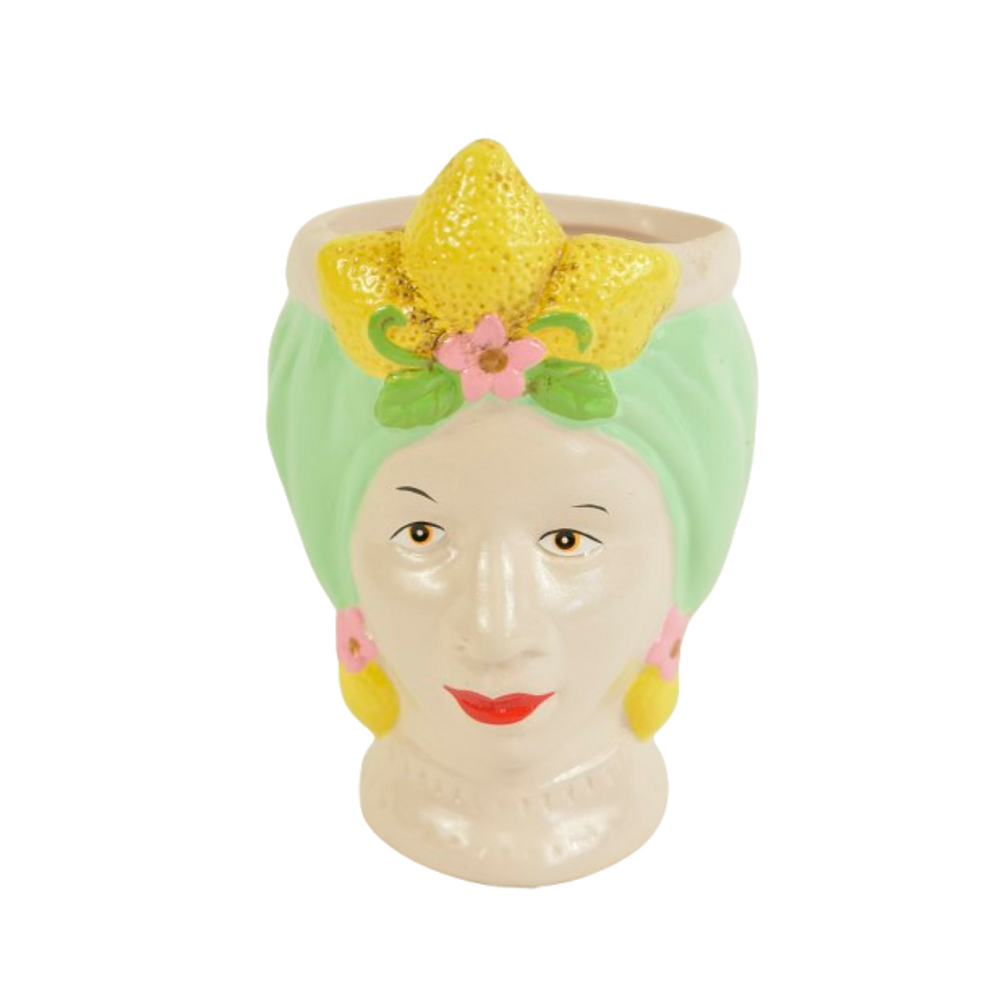WOMAN HEAD POT CERAMIC D8X12H GREEN