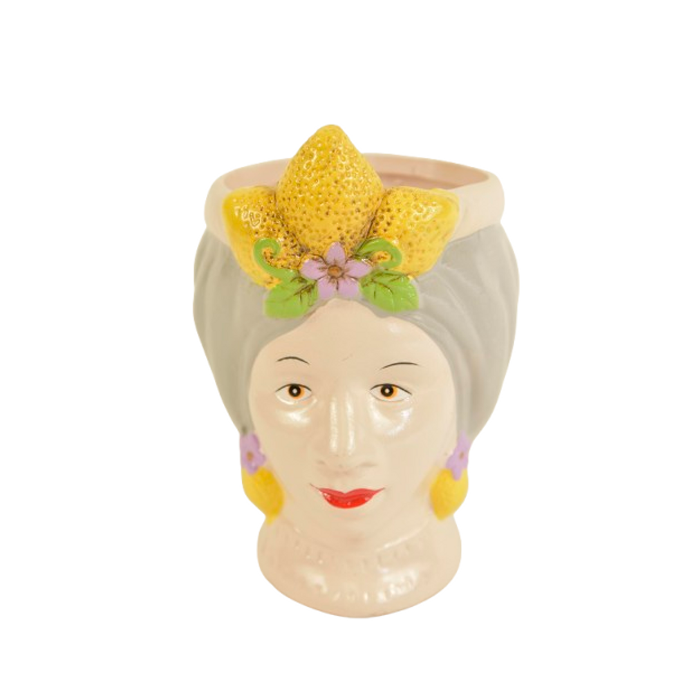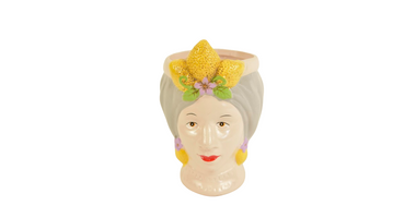 WOMAN HEAD POT CERAMIC D8X12H GREY