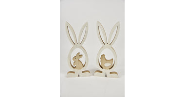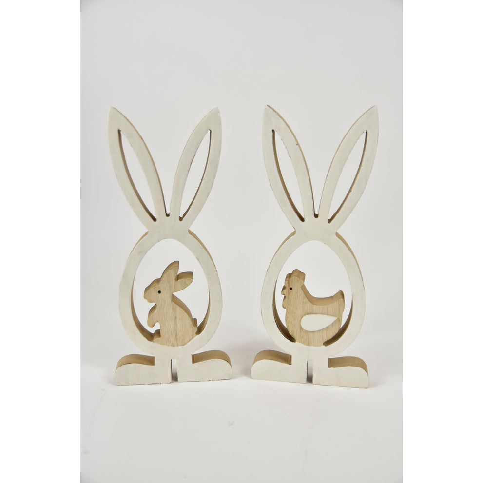 Wooden Rabbit 14x2x32cm, 2ass. Natural/white