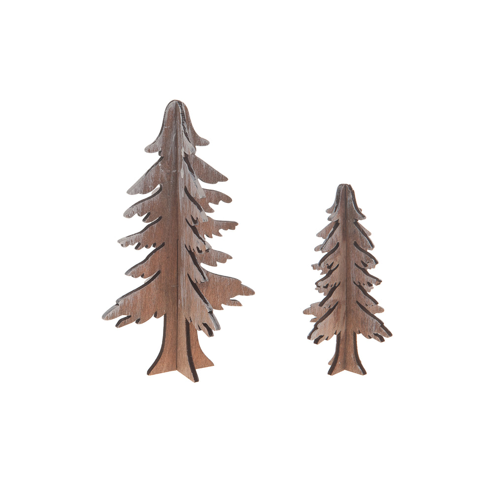 Wooden tree 3D 8-12x4-5.5cm 6pc - Brown