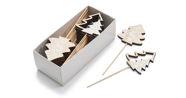 Wooden Xmas tree pick 7cm 24pcs