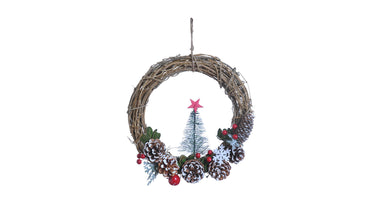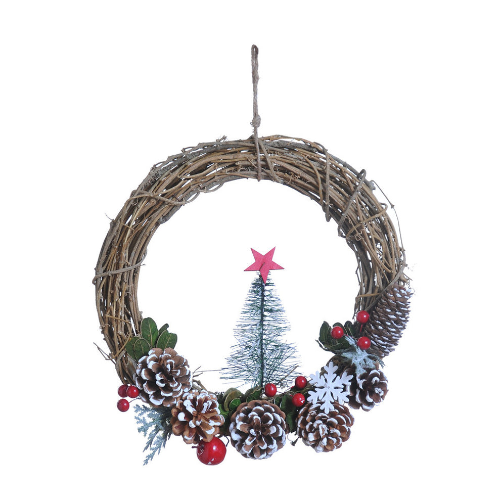 Wreath Pinecone Snowflake Rattan Ø30 H8cm White/Red