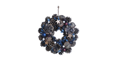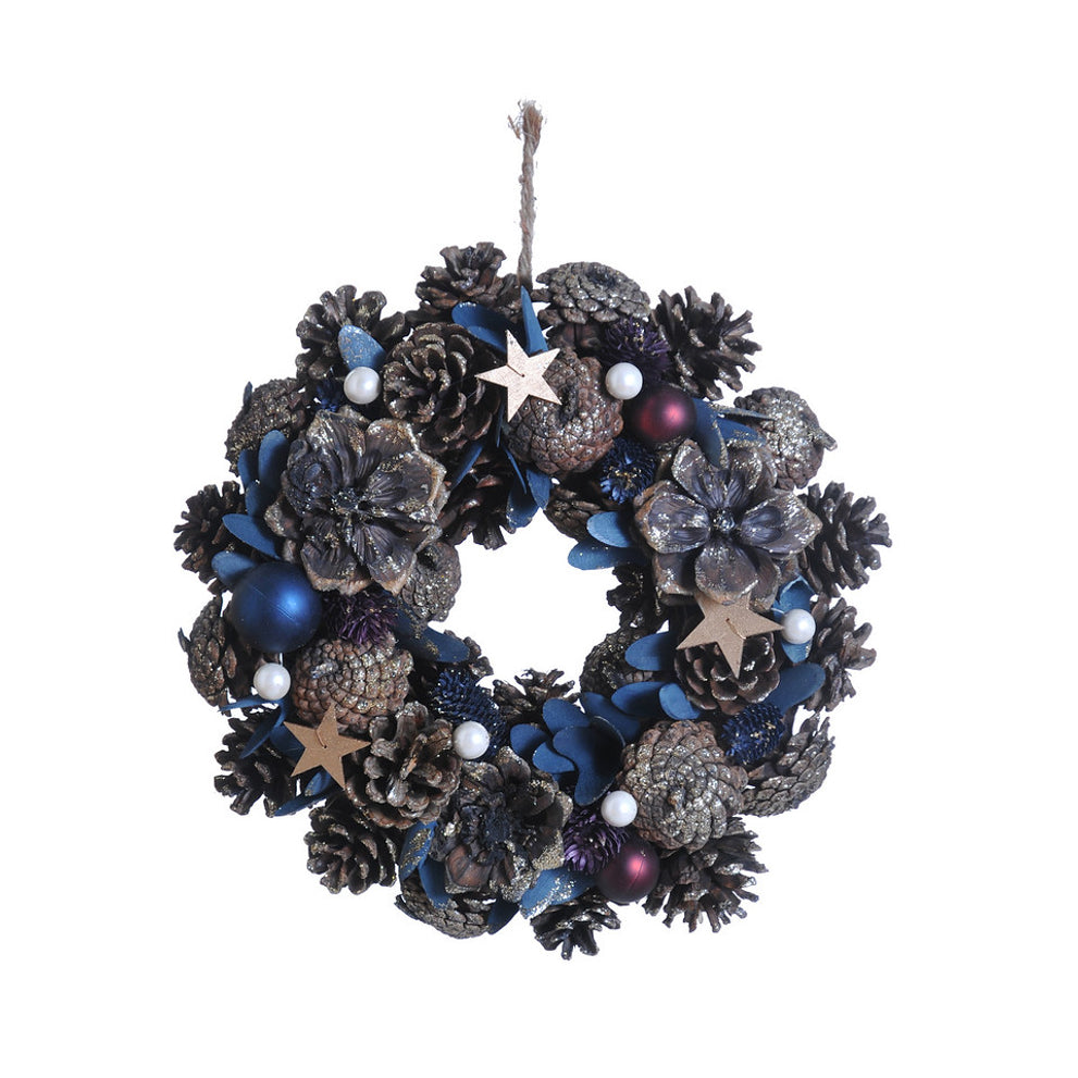 Wreath Pinecone White Berry Ø30 H8cm Blue/Gold