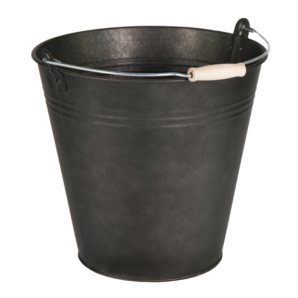 Zinc Vintage Black Bucket Wooden Handle D28H27cm
