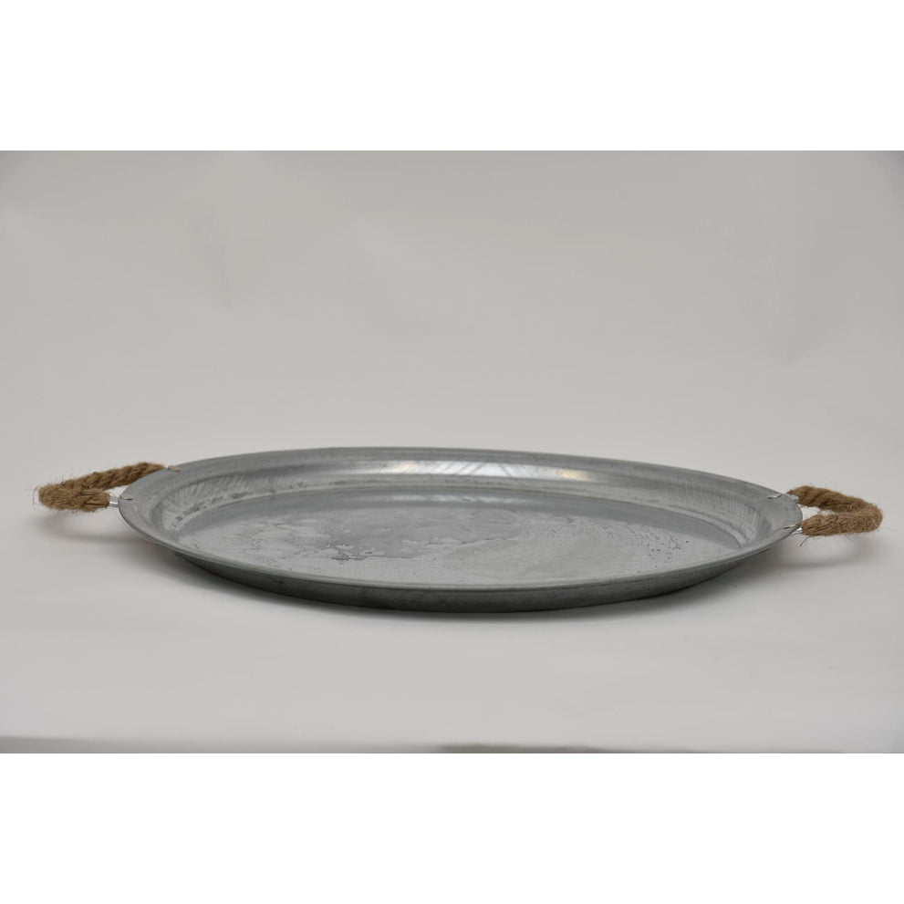 Zinkplateau rond met jute oren D45 H2,5cm